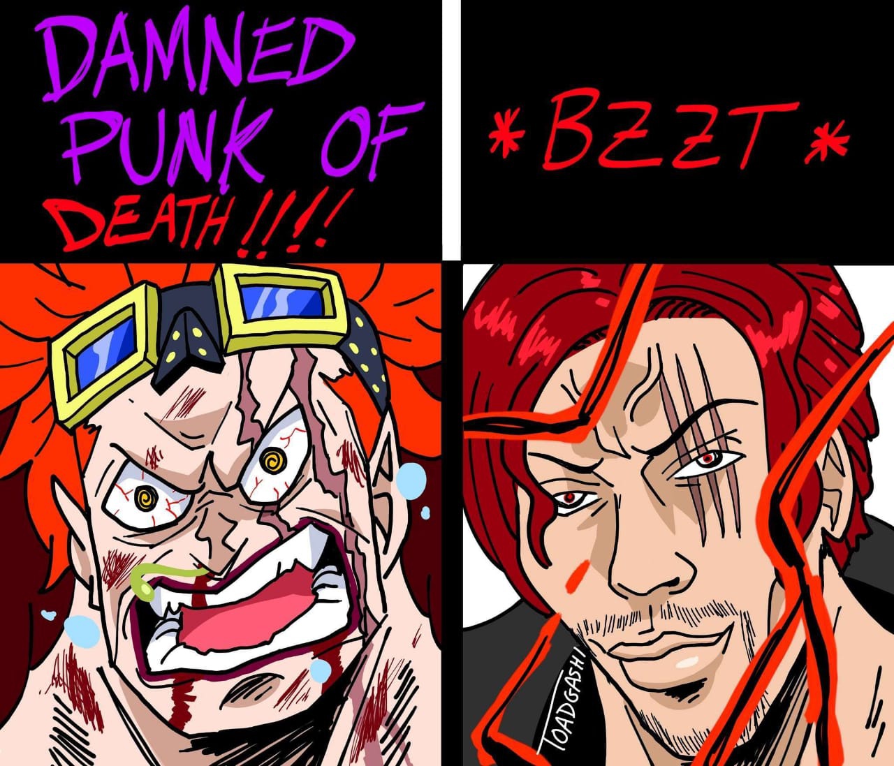 Shank sempat ketar ketir, untung dia licik nyerang kid pas lgi ga siap battle, lol